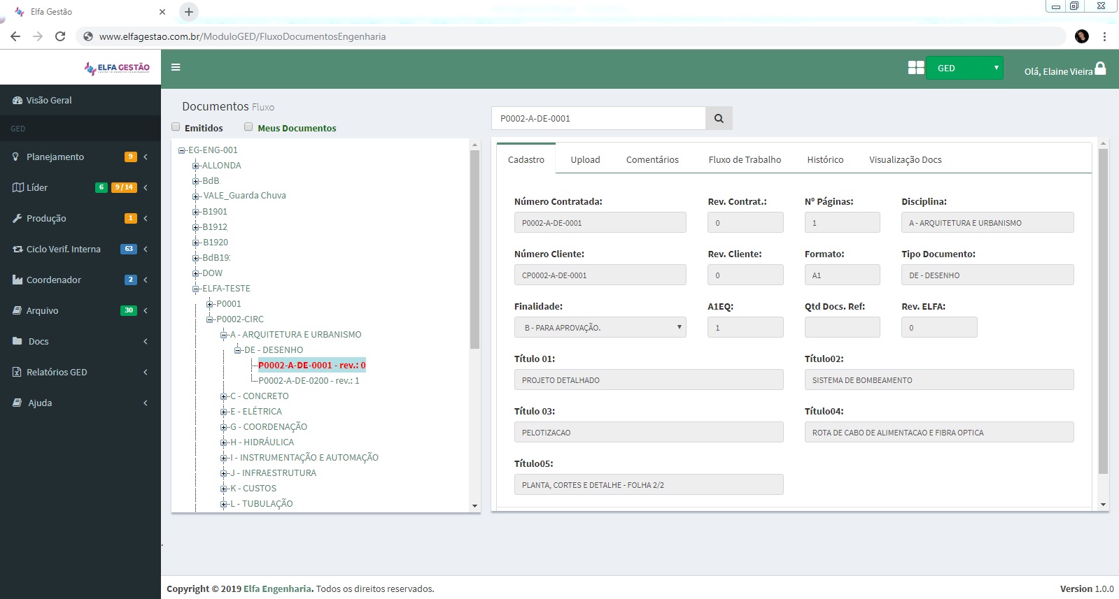 O software ELFA GESTÃO – Gestão de Projetos de Engenharia, é responsável por gerenciar os documentos produzidos pela engenharia, controlando revisões e emissões.