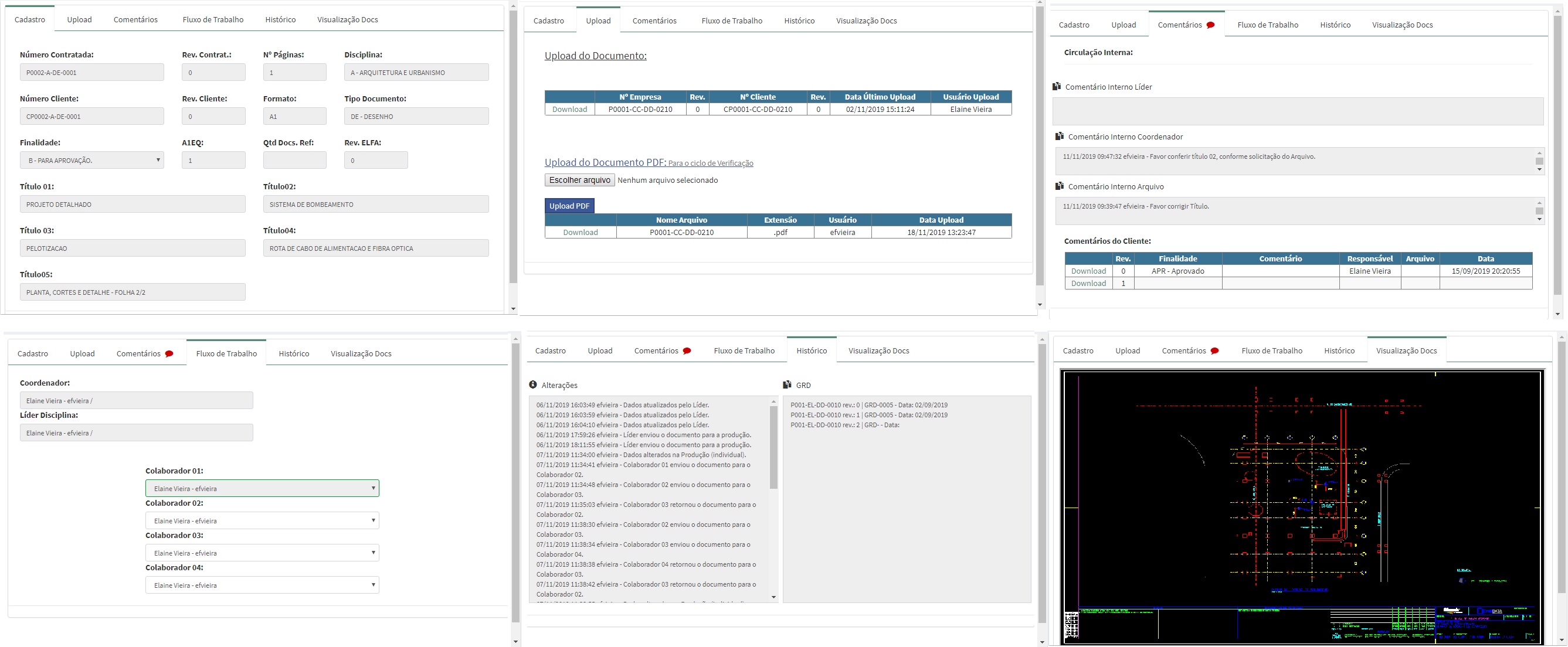 Gerenciamento de documentos com controle de revisões, fluxo de aprovação, Ciclo de verificação Interna, emissão de GRD automática, exportação de LDs do cliente, LD Master e relatório diversos.