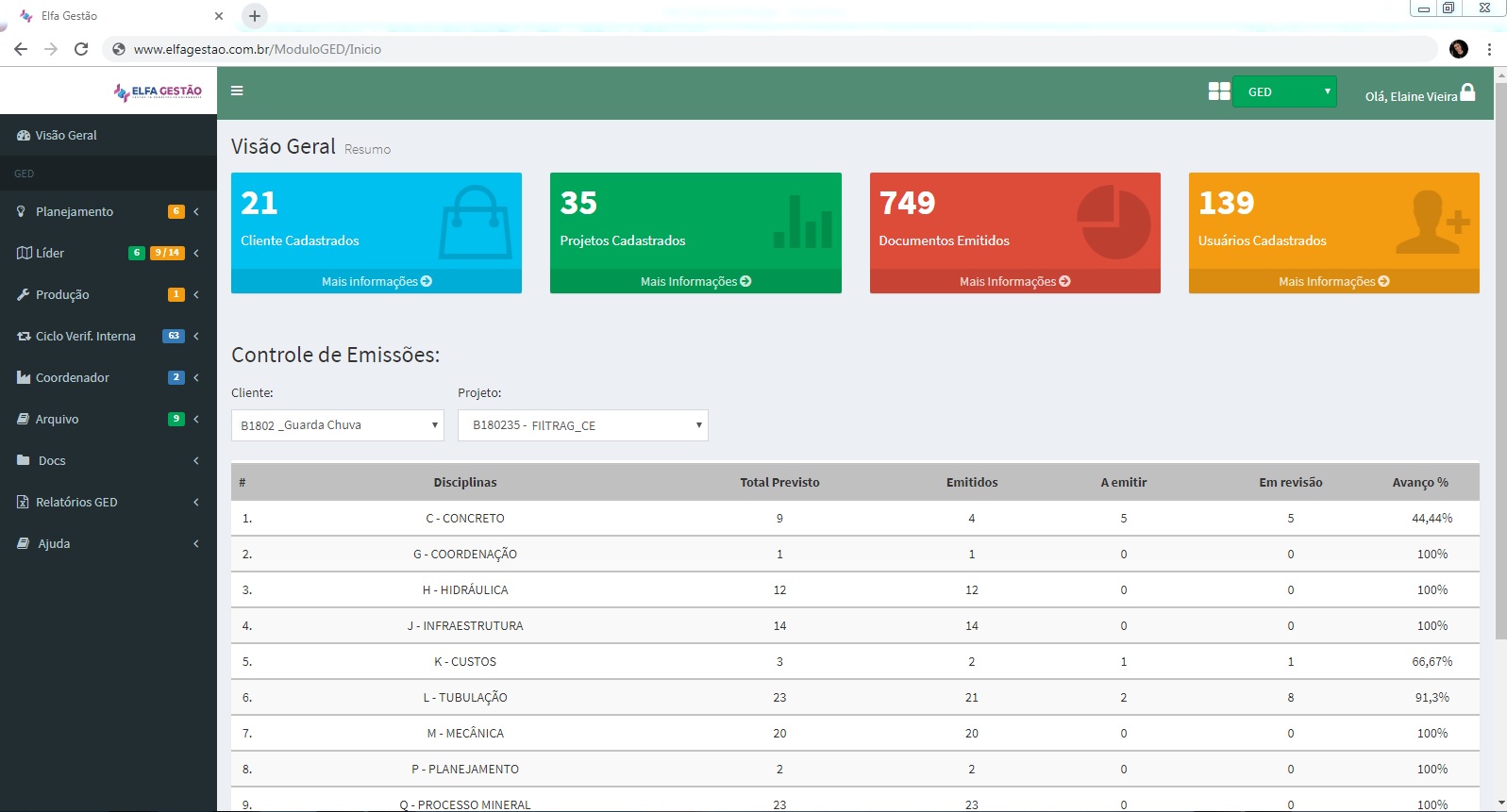 ELFA GESTÃO é responsável por toda parte de gestão de projetos de engenharia desde a contratação do colaborador RH, gerenciamento de documentos GED, gestão da qualidade, aprovação de horas trabalhadas e diversos relatórios.