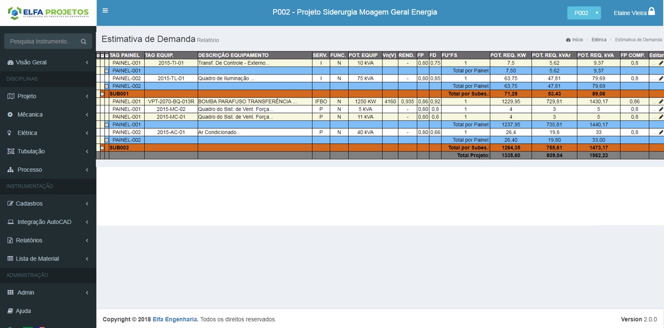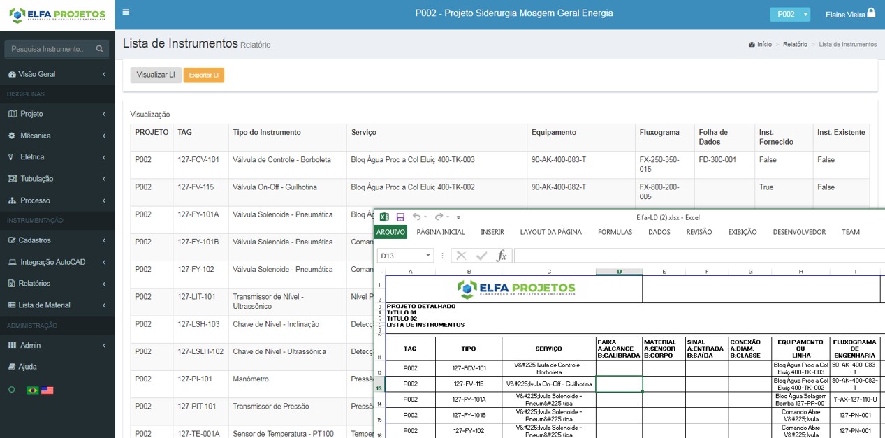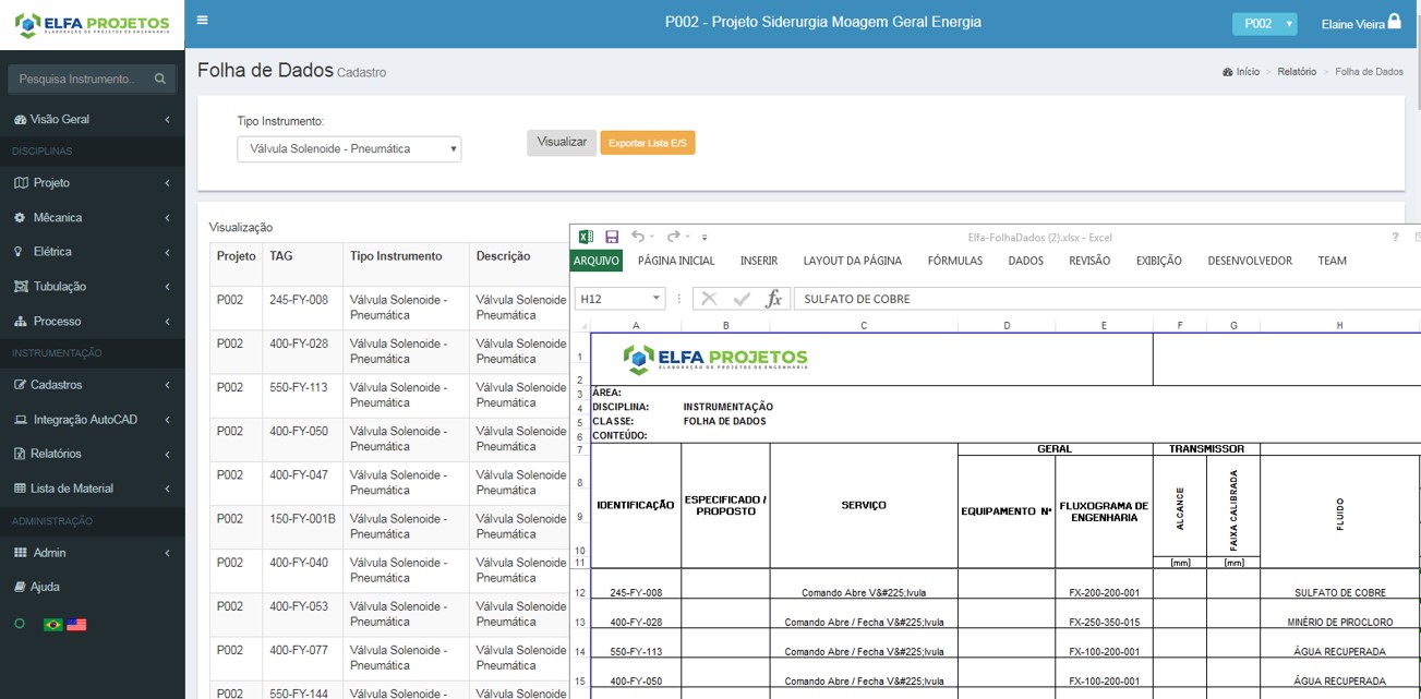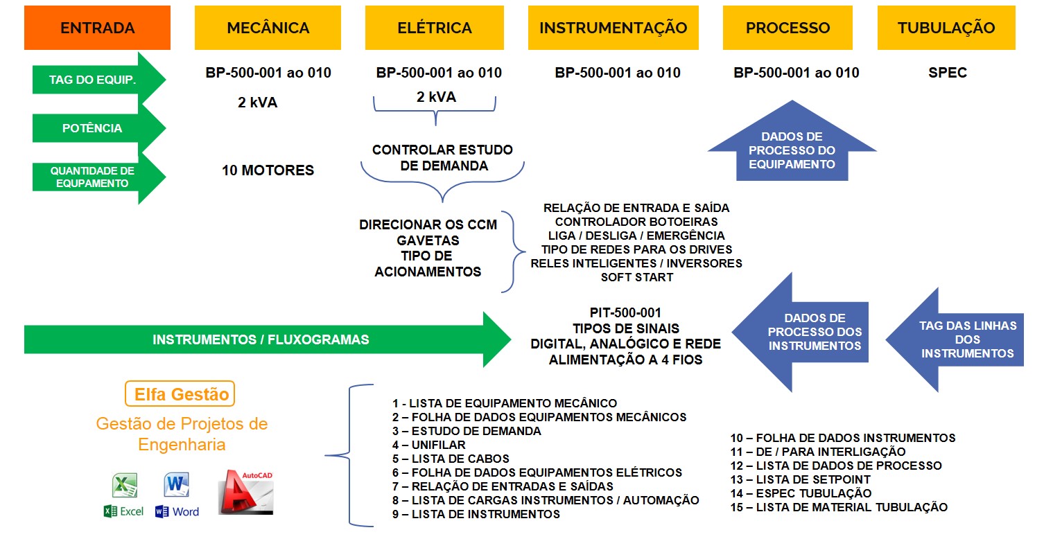 ELFA PROJETOS é responsável pelo cadastramento e controle dos itens de engenharia gerando os documentos: