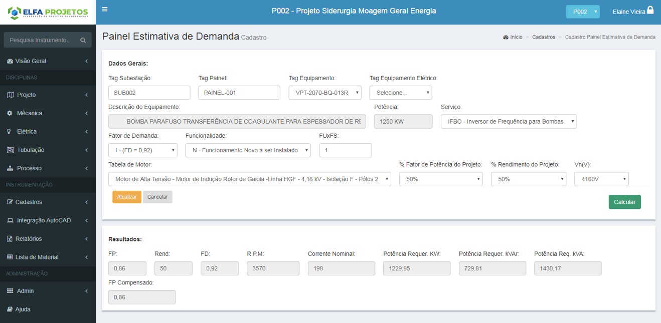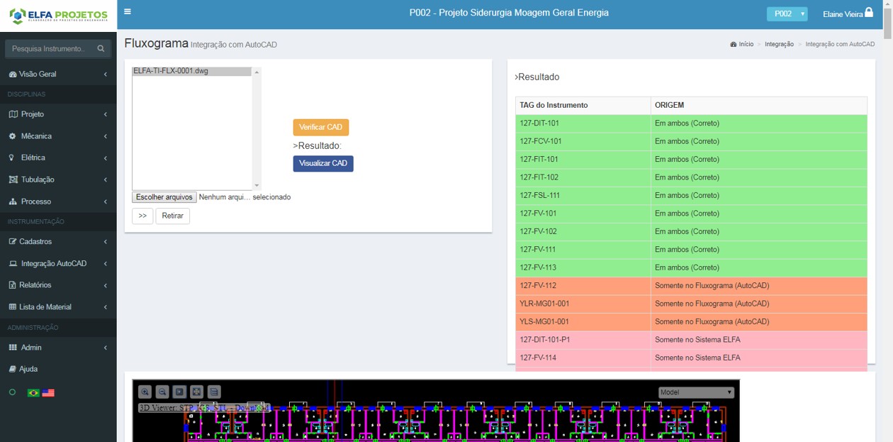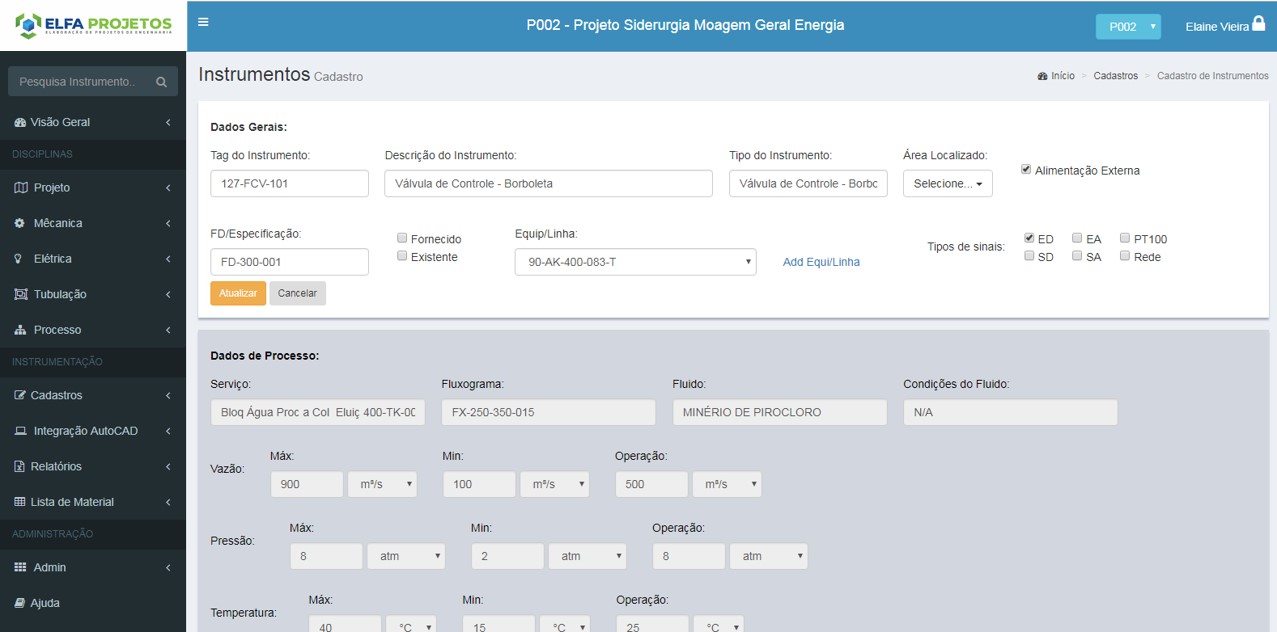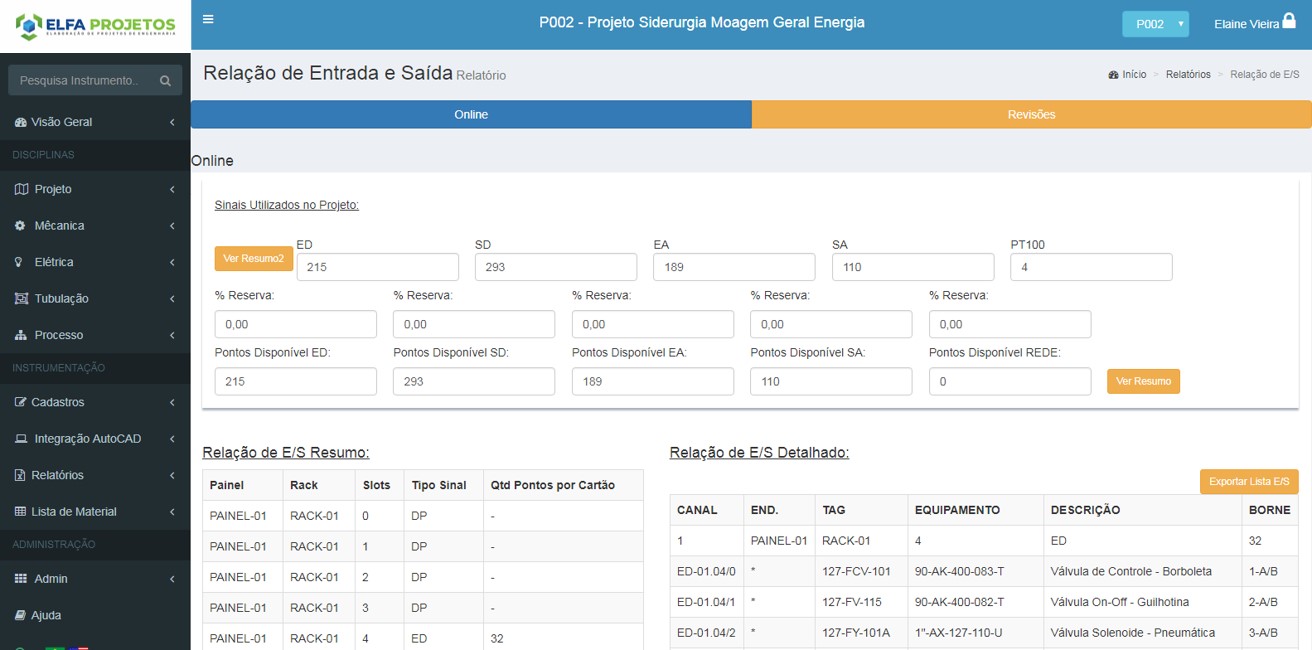 ELFA PROJETOS é responsável pelo cadastramento e controle dos itens de engenharia gerando os documentos: